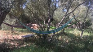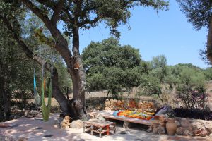 Rodeada de viñedos, encinas y olivos, se esconde una pequeña finca de clásicas piedras mallorquinas, cuya piscina/laguito natural es un verdadero oasis para pajaros, abejas y libélulas.